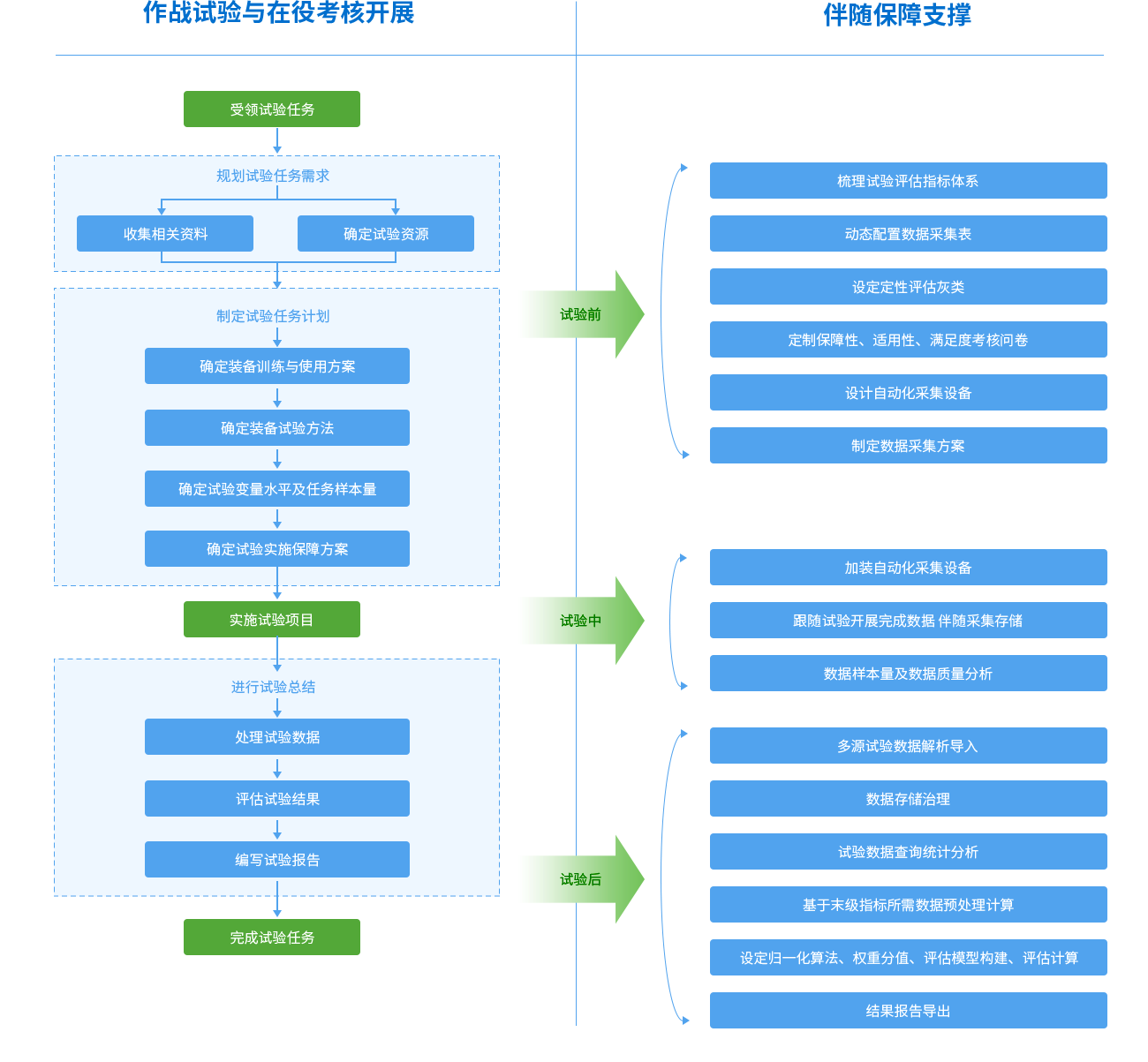 試驗過程中在裝備上加載自動化采集設備完成過程數據自動化采集存儲,并且跟隨試驗開展及時采集問卷數據及采集表數據,架設無線傳輸網絡,實時將前端采集數據回傳至指揮中心,為指揮人員提供數據支撐。